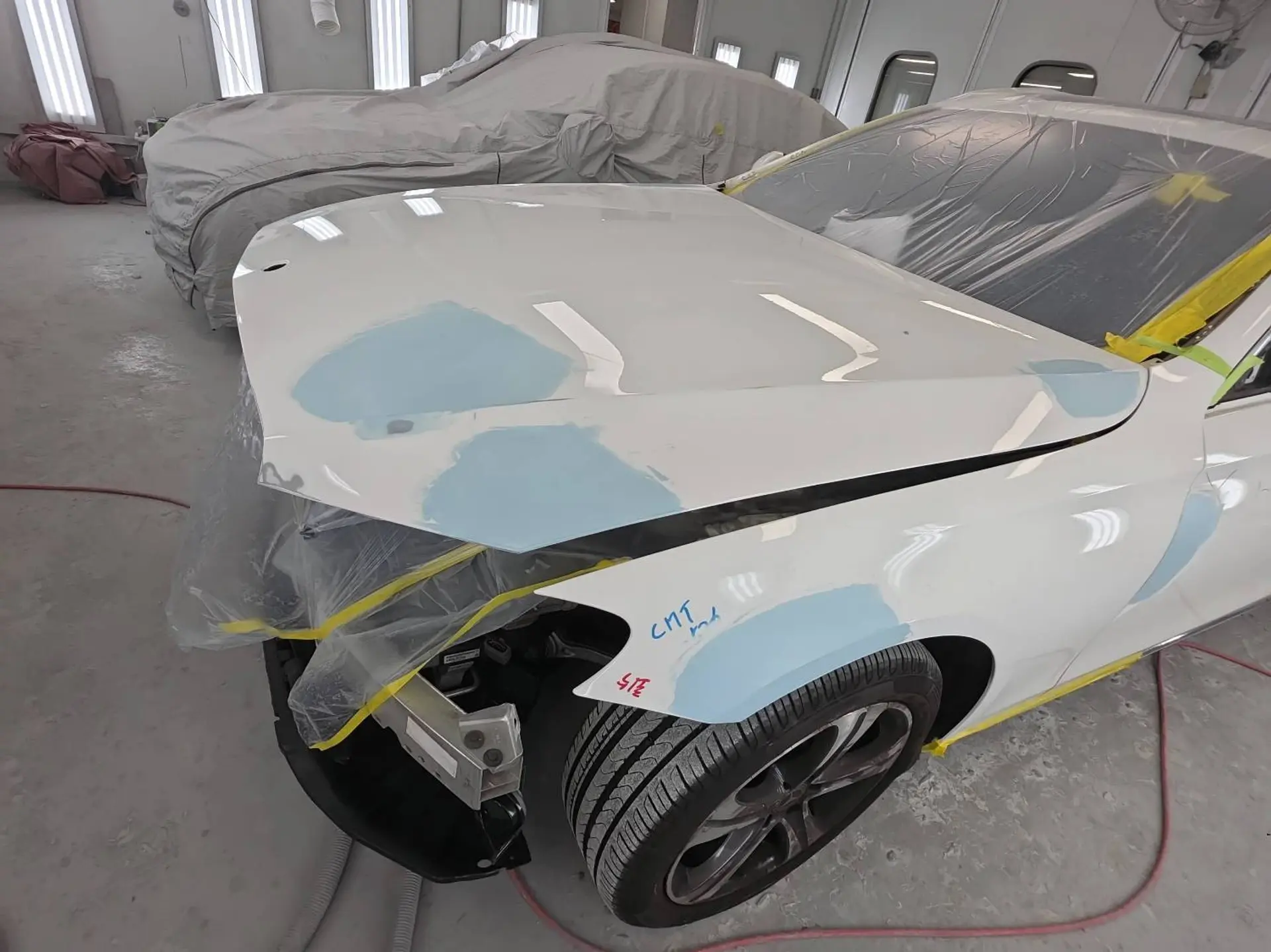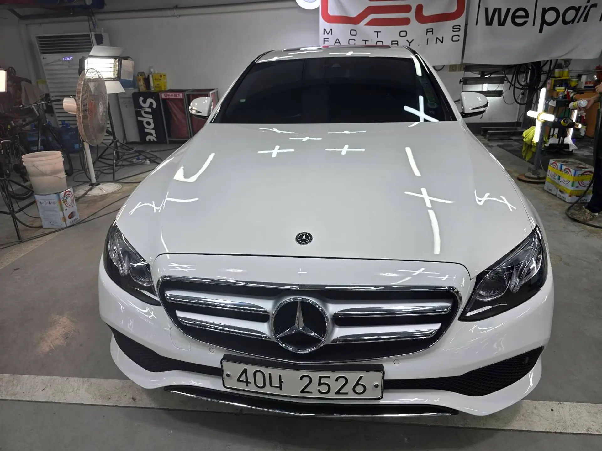 성수동 벤츠 E클래스 앞범퍼, 휀다, 후드 복원 사례