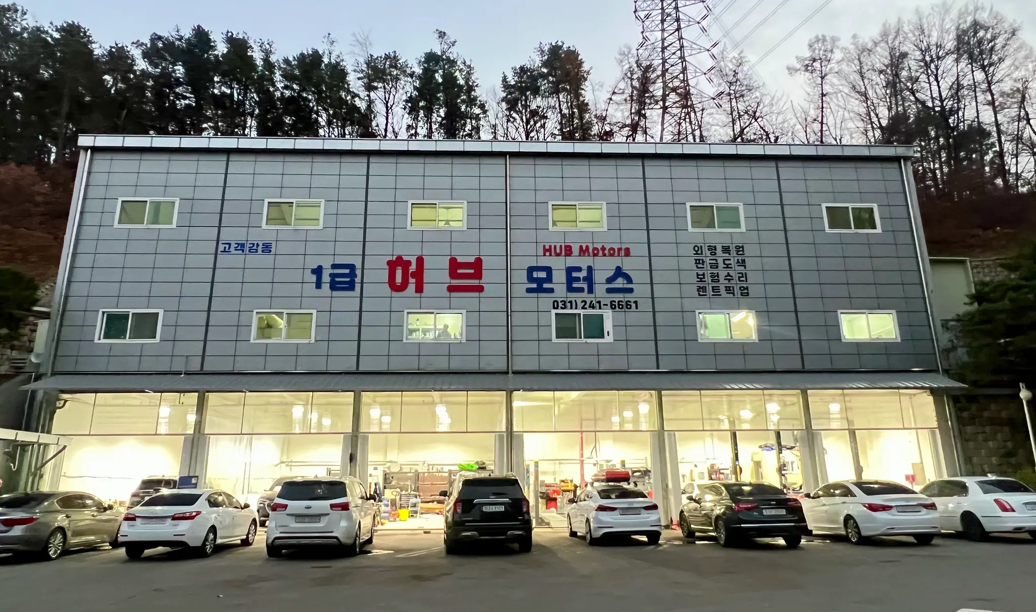 상담견적은 무료입니다 언제든 편하게 연락주시면 성심성의껏 도와드리겠습니다 안녕하세요~ 수원신갈ic 인근에 위치한 1급허브모터스 입니다. 정식으로 인증.허가 받은 업체로 품질만족 서비스를 보답 할 수 있는 시설 환경이 조성되었습니다. 특히 "자동차외형복원"에 있어 판금, 도장(도색), 덴트 작업은 ▣High Quality▣ 고품질을 지향하기 위해~ 항상 깔끔한 작업장을 유지하고 있습니다 ◈ ::첨단 특수 열처리 도장 부스 :: ◈ ◈ ::바스프 글라슈리트 조색기 ::◈ ◈ ::최상품 자재ㆍ고급전문인력 :: ◈ 독일 제조색기 보유ㆍ공식센터출신 전문인력이 근무중에 있습니다. 금액 싸게싸게 빨리빨리 속성날림으로 겉만 뻔지르르~가 아닌, 정확한 작업 부위 정밀 진단과 하자율 최소화 "0.1"%를 위해, 기초 작업부터 차량 인도 출고까지 【소중한 내 차 처럼】 정성을 다 하겠습니다. ▶1급 허브모터스의 특장점 ◀ ㅁ. 자동차 토탈케어서비스 -외판수리부터 엔진미션, 소모품경정비, 광택/유리막 등 *부분유상 진행 ㅁ. 합리적인 견적을 제시 -자동차의 모든 부분을 고객님과 소통하여 수리 진행 *임의수리->청구X ㅁ. 평일 밤은 물론 주말에도 차량 입고 가능 -고객님 보험사의 무상 SOS렉카 서비스를 통해 24시 안전하게 공장 입고 ㅁ. 품질보증 무상A/S - 신품 : 물리적인 외부 충격 및 고객과실이 아닌 1년에 하자 발생시 - 중고 : 중고부품 자체에 하자 A/S불가능. 단 신품기준에 준하여 도장&클리어 크랙, 하자 발생시 A/S 가능 항상 고객님 입장에 맞춰 가성비 견적과 고품질을 제공하도록 노력할것입니다 감사합니다. "Provide High Quality" M. 010-7143-6644