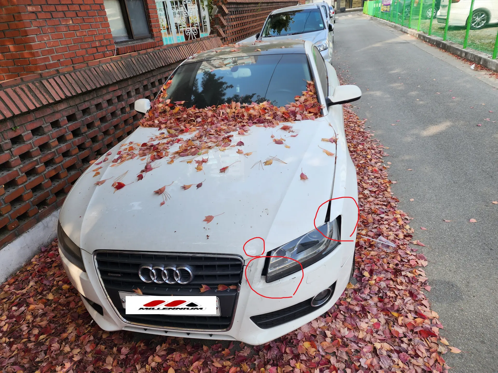앞범퍼, 뒷범퍼, 운전석 전펜더, 운전석 후펜더, 조수석 전펜더, 조수석 후펜더, 후드, 사이드미러/유리/휠/라이트