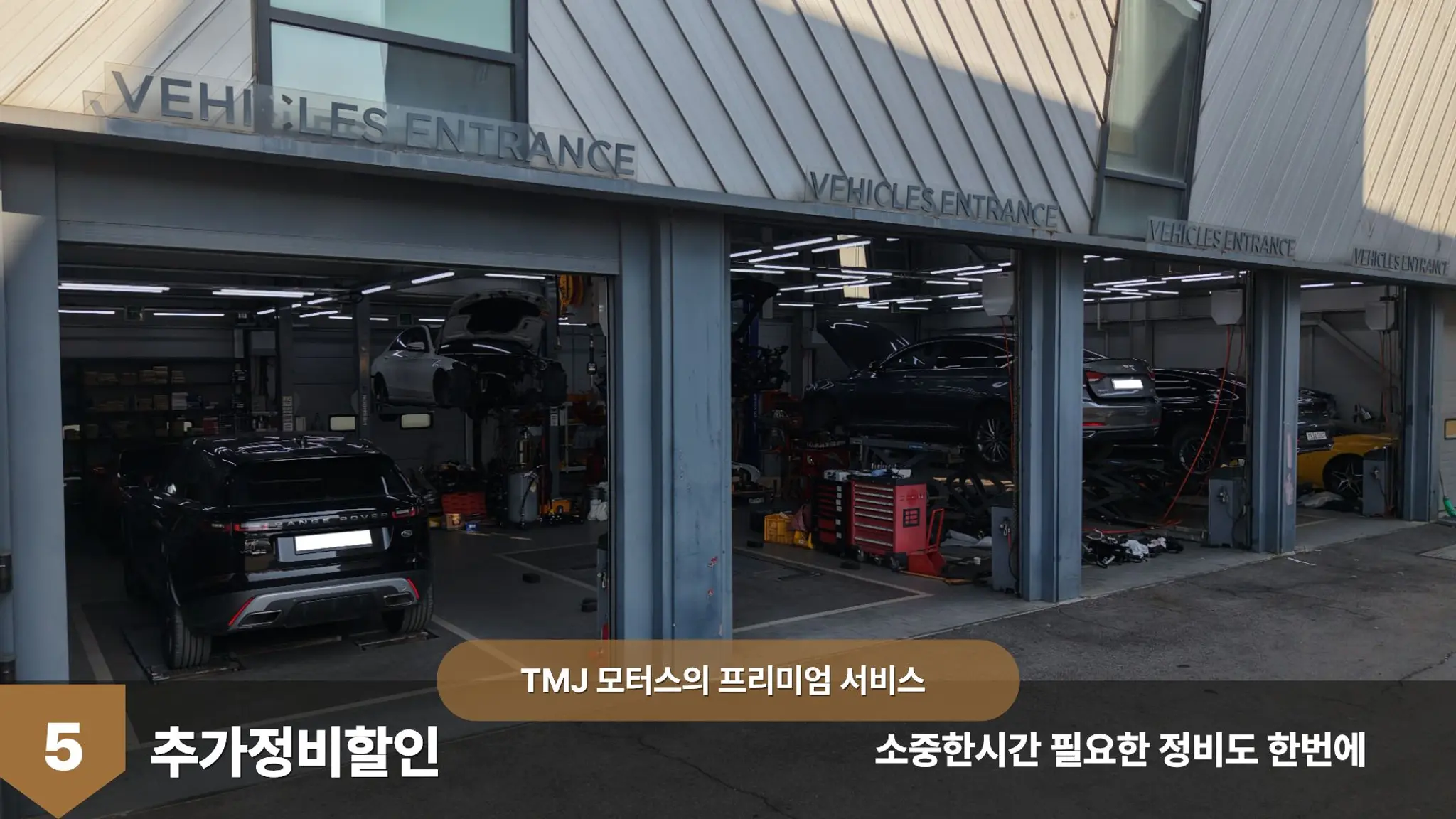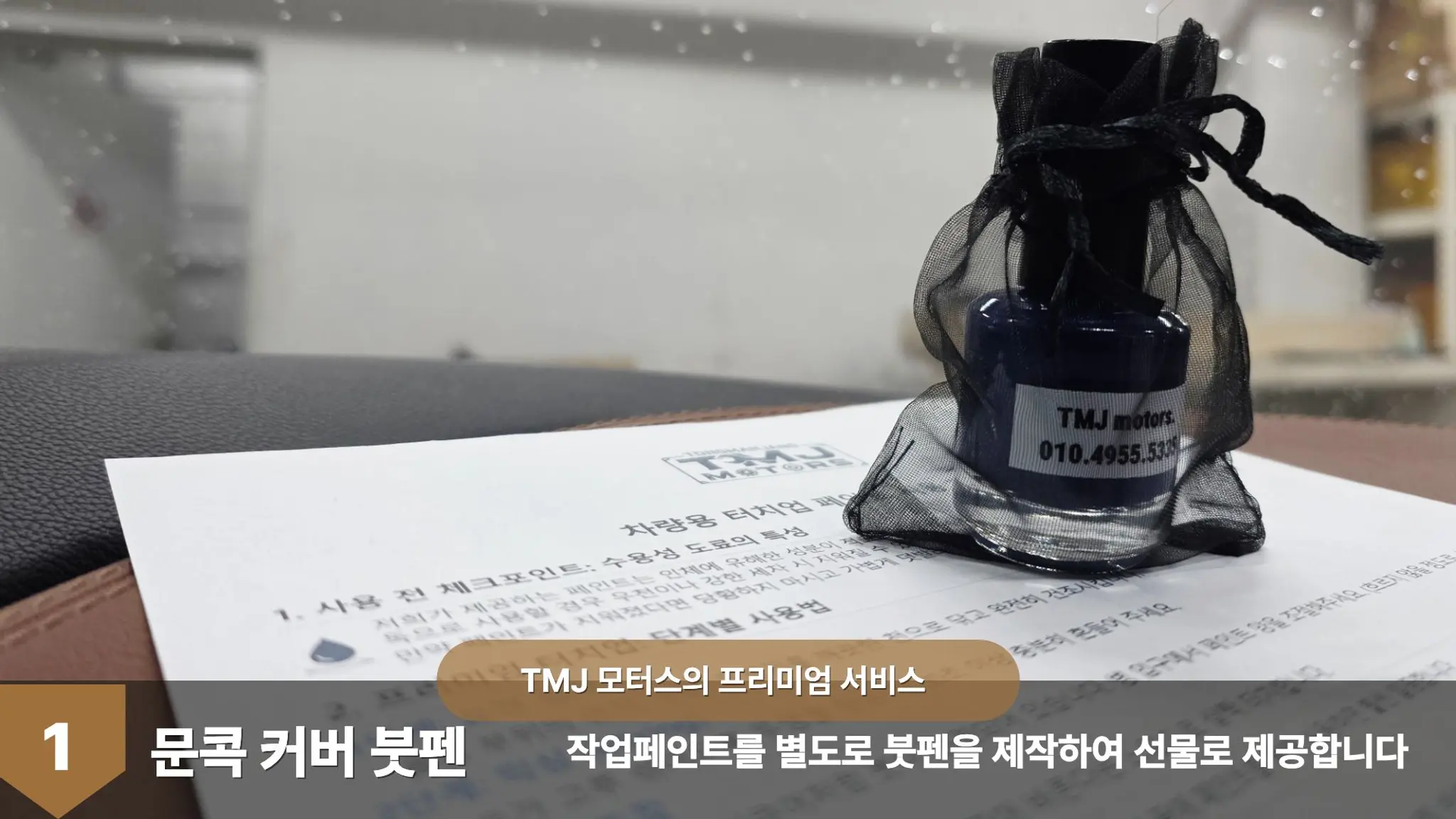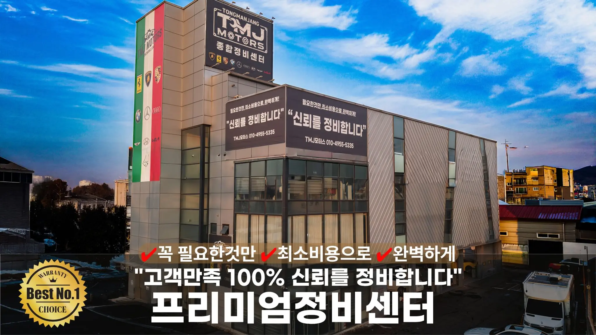 ✨안녕하세요✨ ✔️꼭 필요한것만 ✔️최소비용으로 ✔️완벽하게!! 고객만족 100% "신뢰를 정비합니다" 프리미엄 정비센터 TMJ모터스 입니다. 📍카닥인증! 견적정확도우수업체 견적 외 현장 추가비용 X 📍프리미엄서비스제공 ✔️최고급도료,시설,기술력 신차상태로 복원 ✔️오전 9시까지 입고 시 당일 출고가능 ✔️보험처리 시 자기부담금 지원, 할증X ✔️자차보험 시 대차지원 ✔️고객만족100%.품질보증, AS ✔️픽업/딜리버리 지원 ✔️세차서비스 ✔️문콕보수 붓페인트 제작 제공 ✔️차량점검 ✔️전담어드바이저배정 📍예약 및 진행 ✔️1. 예약 전화 OR 메세지 ✔️2. 입고 및 무료픽업 방문입고 or 무료픽업 ✔️3. 작업투명성 입고, 작업, 출고사진 고객에게 전달 ✔️4. 출고&딜리버리 -1판 : 유료 -2판이상 : 무료 📍이벤트가 정비제공! 소중한 시간! 입고하실때 할인받아 함께 정비하세요! - 각종오일류 : 엔진오일, 미션, 냉각수등 - 소모품류 : 패드, 타이어등 - 경고등 진단수리 ✨ 최고의 만족으로 보답해드리겠습니다. 감사합니다. 📍문의 : 010-4955-5335