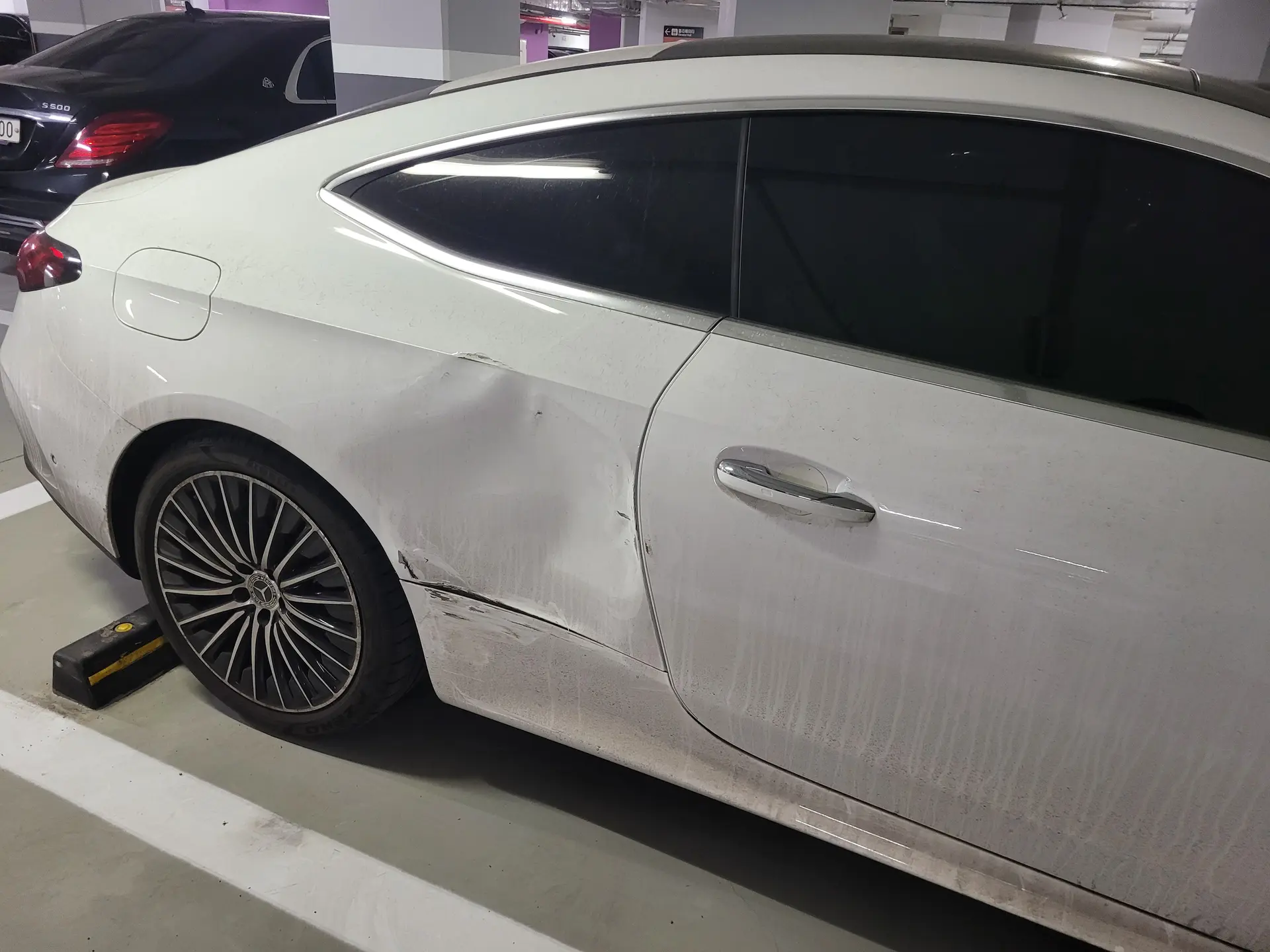 서초,벤츠CLE 조수석뒤휀다,사이드스텝몰딩 판금도색