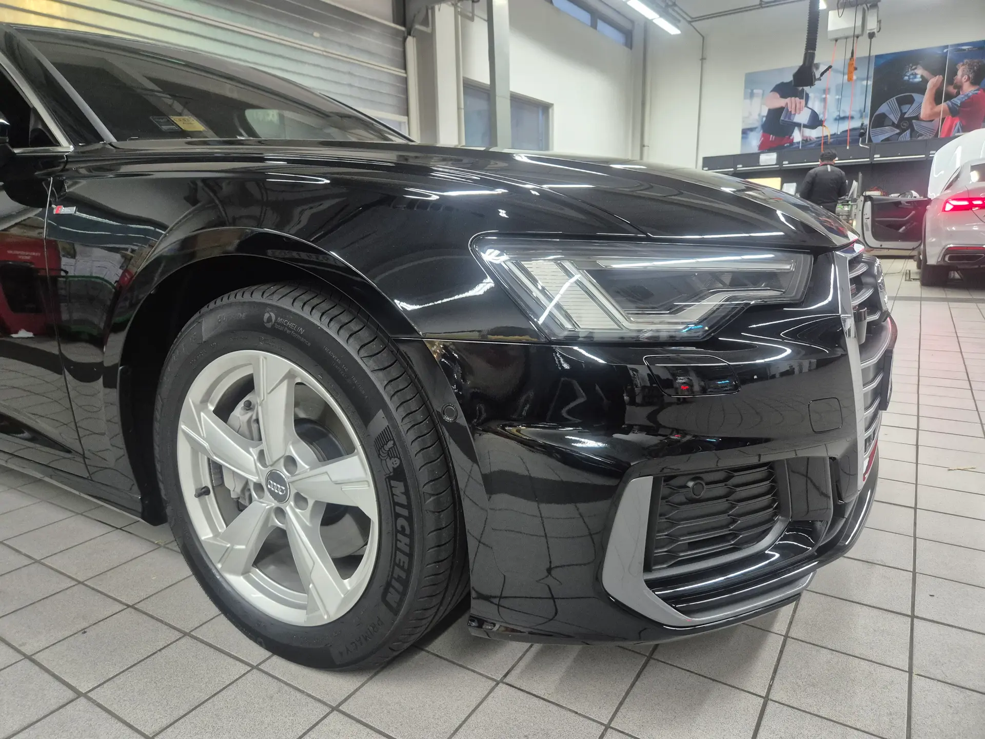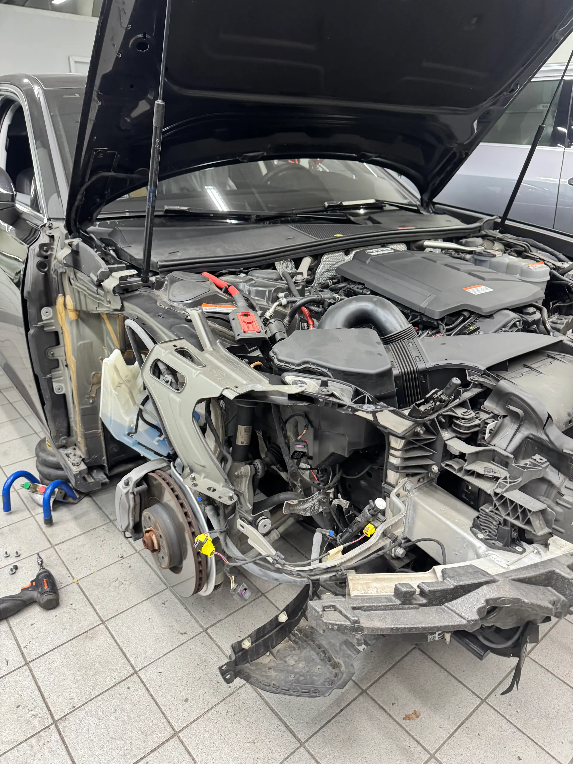 아우디 A6 앞범퍼,앞 우측 휀더 교환
