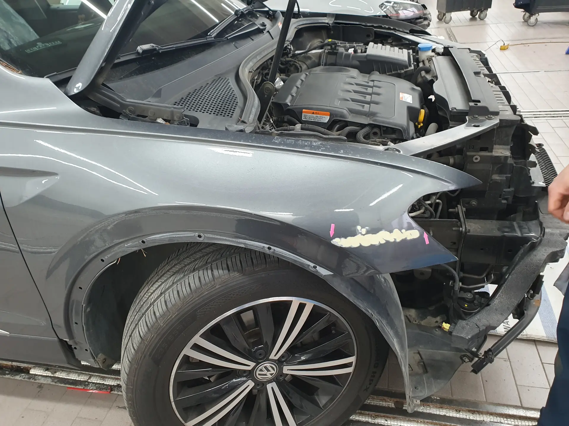 티구안 조수석 앞 휀다 판금/도장 수리건