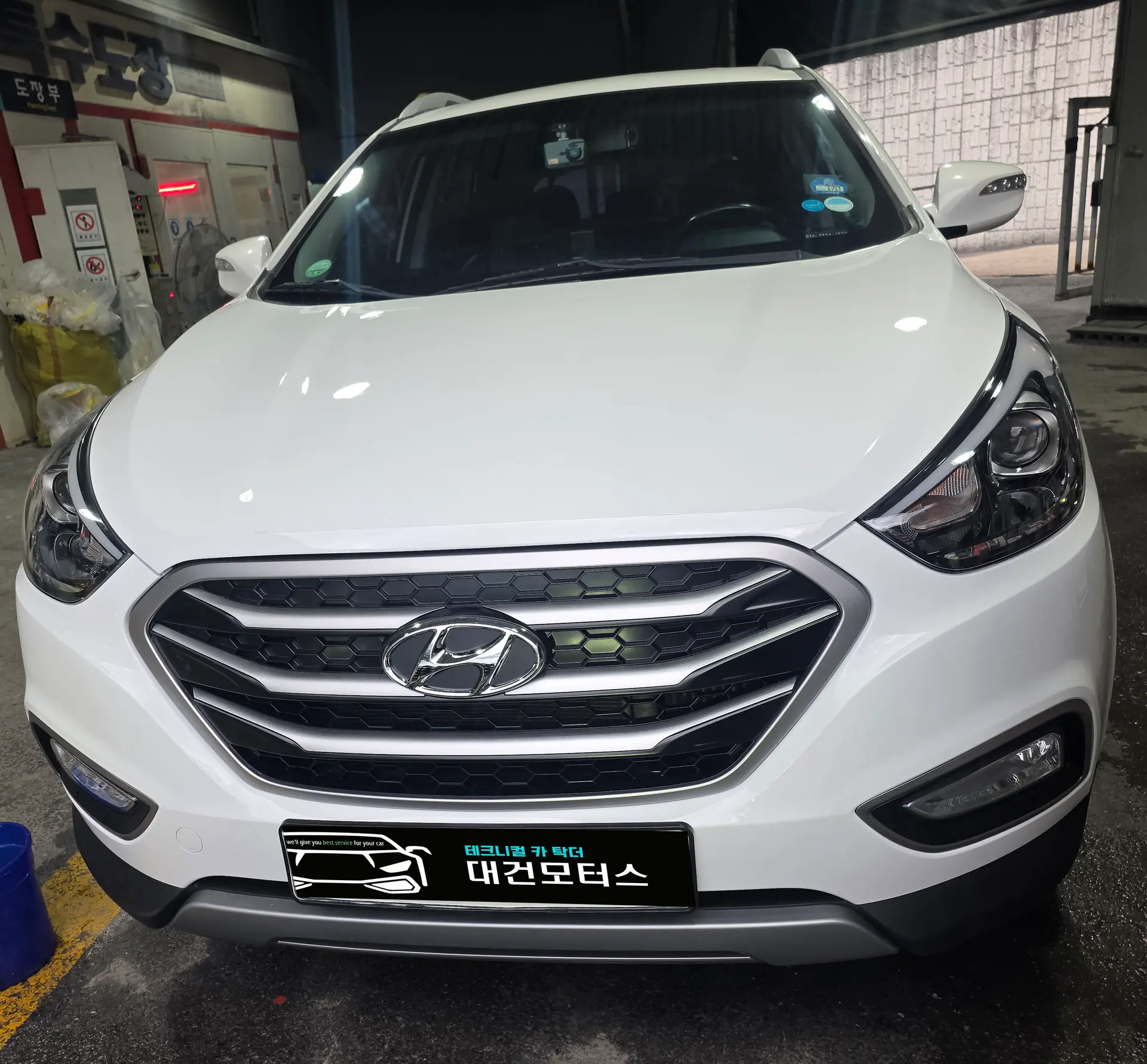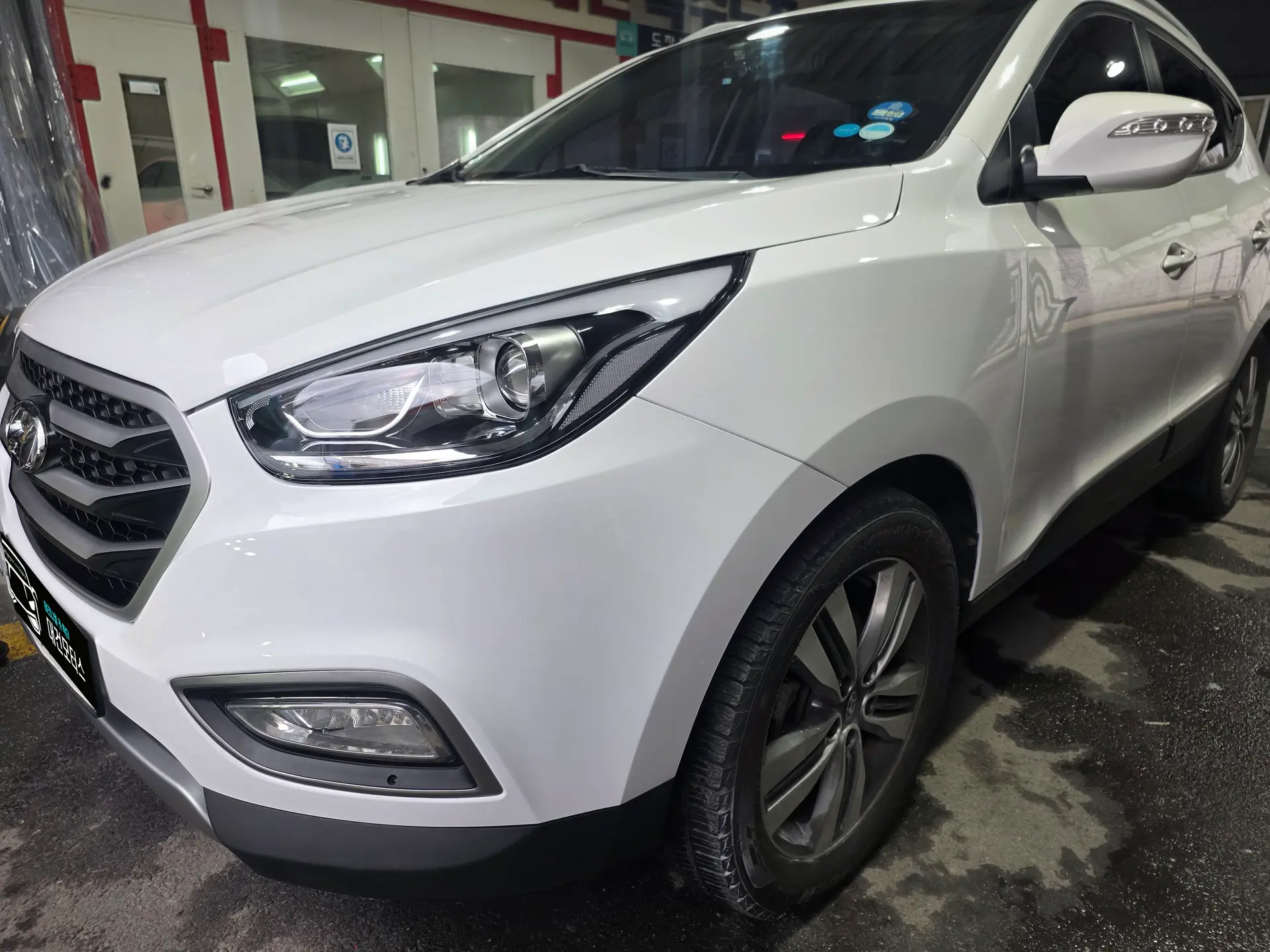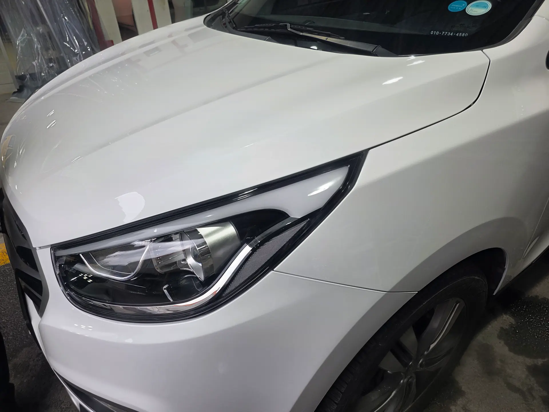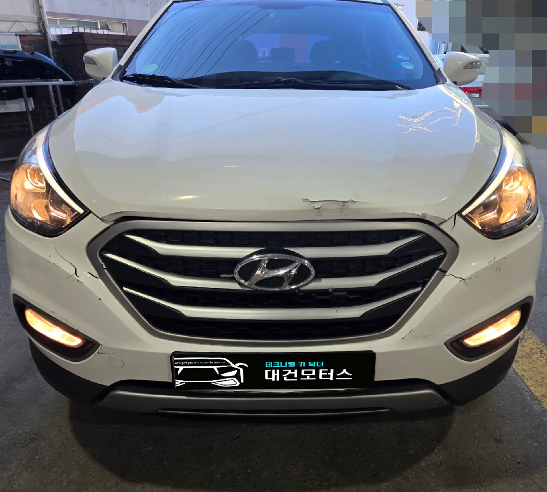 투싼 앞범퍼 후드 파손으로 입고 되었습니다